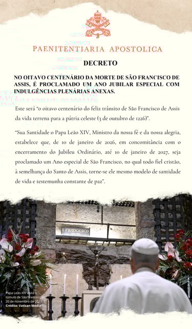 “O ano de 2026 [...] será, de fato, o Ano de São Francisco, e todos seremos chamados a nos tornar santos na contemporaneidade, seguindo o exemplo do Seráfico Pai”.
